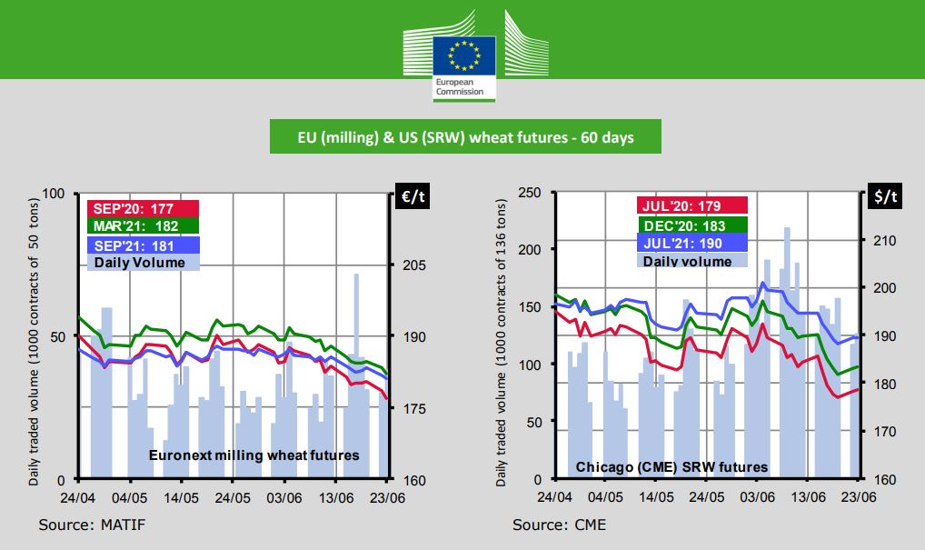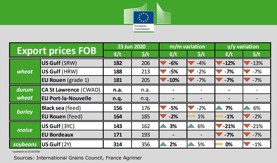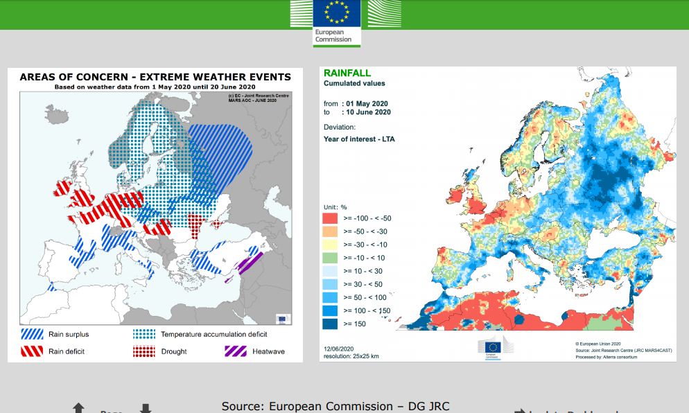 Date despre preturi, productii si starea culturilor iunie 29, 2020iunie 29, 2020 agrimanet O actualizare saptamanala a mai multor tabele si grafice cu cele mai recente informatii despre preturile, productia si starea culturilor, informatii provenite din surse oficiale ale UE Preturi grau, grau durum, porumb, orz, soia – data actualizarii 25.06.2020 Evolutie pret grau Evolutie pret porumb Productia mondiala Productie Uniunea Europeana Grau- contracte future 60 zile Evenimente extreme ale conditiilor meteo