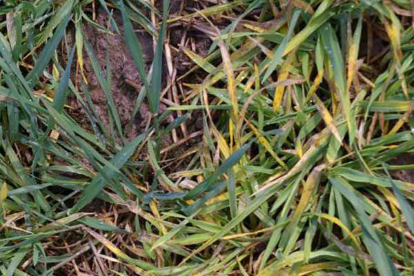 Boala apare la început la marginea culturilor, ulterior evoluând în vetre sau afectând întreaga cultură. Din toamnă, vârful frunzelor prezintă o îngălbenire aurie sau portocalie, care se extinde spre bază, mai întâi spre regiunea marginală, apoi pe toată suprafaţa limbului, ultimele ţesuturi care se decolorează fiind cele din apropierea nervurii principale. Frunzele îngălbenite sunt îngroşate, erecte şi rigide. Plantele infectate rămân pitice şi vegetează timp îndelungat; înfrăţirea este stimulată, iar sistemul radicular este slab dezvoltat. Plantele infectate în fază foarte tânără sunt total distruse. Simptome asemănătoare pot fi produse de complexul microplasma clorozei asterului şi virusul îngălbenirii şi piticirii orzului.