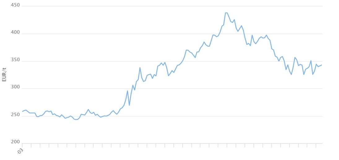 Prețul porumbului la bursa de valori din Paris, pentru contractul din august, a crescut vineri cu 0,1 la sută, la 352,25 EUR/t, iar în ultimul an a crescut cu 31,8%. În cursul săptămânii, cotațiile au crescut cu 9,1 la sută.